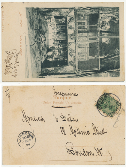 postcard carrying 5p Germania overprinted 10para (German stamps in the Levant 1900-1905 issue) cancelled with